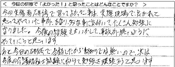 実務者研修受講生の声 7月2日から8月6日にかけて毎週火曜日に開催しておりました